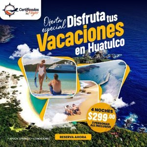 Sumérgete en la belleza natural de Oaxaca en Huatulco. Explora sus nueve bahías, cada una con su encanto particular, y disfruta de actividades como buceo, snorkel, kayak y paseos en barco. Relájate en playas de arena blanca o adéntrate en la selva para vivir una experiencia única.